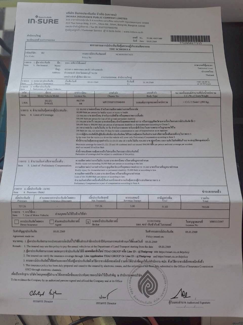 | ชื่อรถ | ISUZU D-MAX | ||