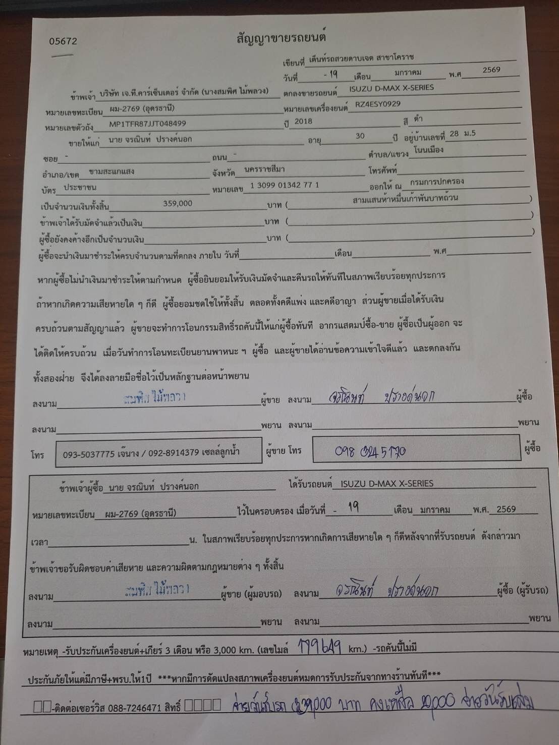 | สาขาที่รถอยู่ | เจที.คารเซ็นเตอร์ - สาขาจักราช | ||