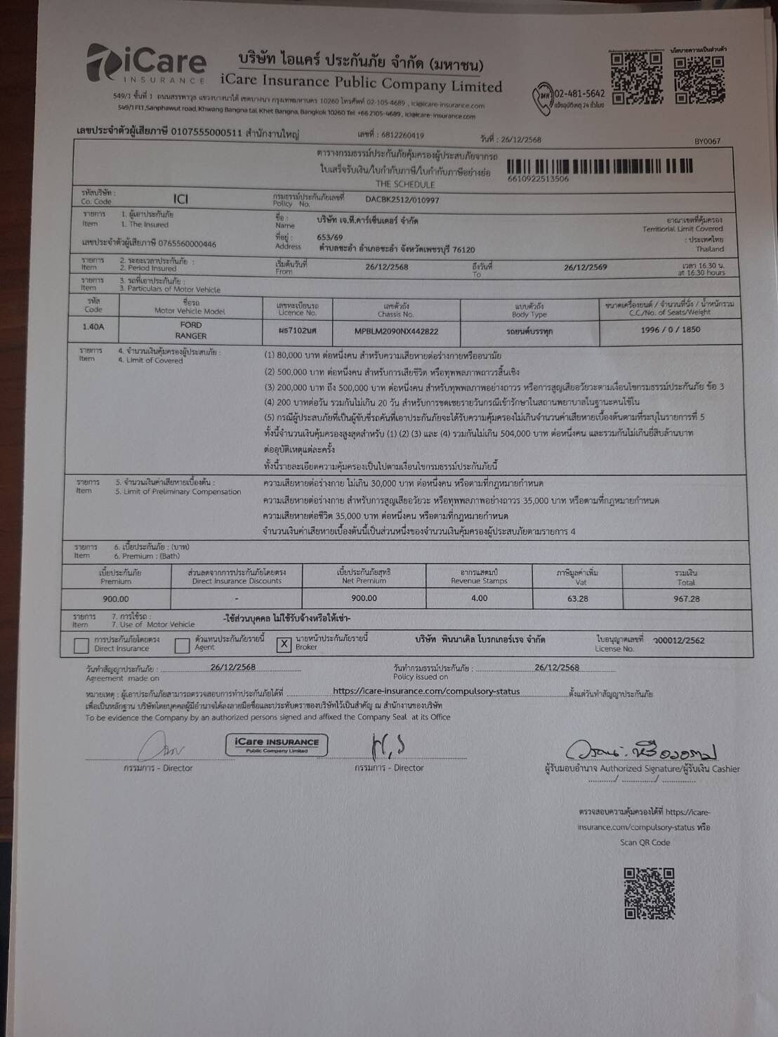 | สาขาที่รถอยู่ | เจที.คารเซ็นเตอร์ - สาขาจักราช | ||