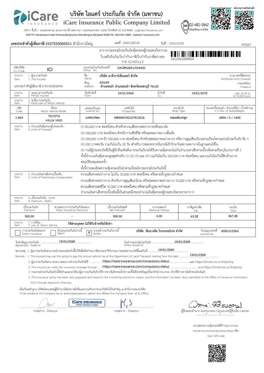 | สาขาที่รถอยู่ | เจที.คาร์เซ็นเตอร์ - ชะอำ | ||