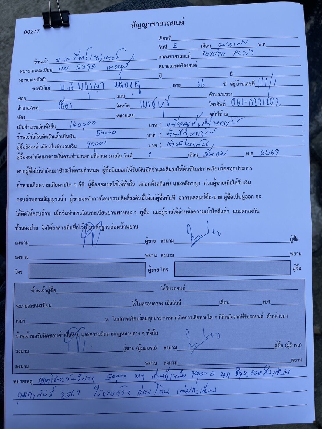 | สาขาที่รถอยู่ | เจที.คาร์เซ็นเตอร์ - ชะอำ | ||