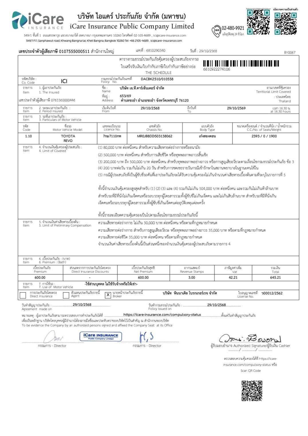 | ชื่อรถ | TOYOTA REVO | ||