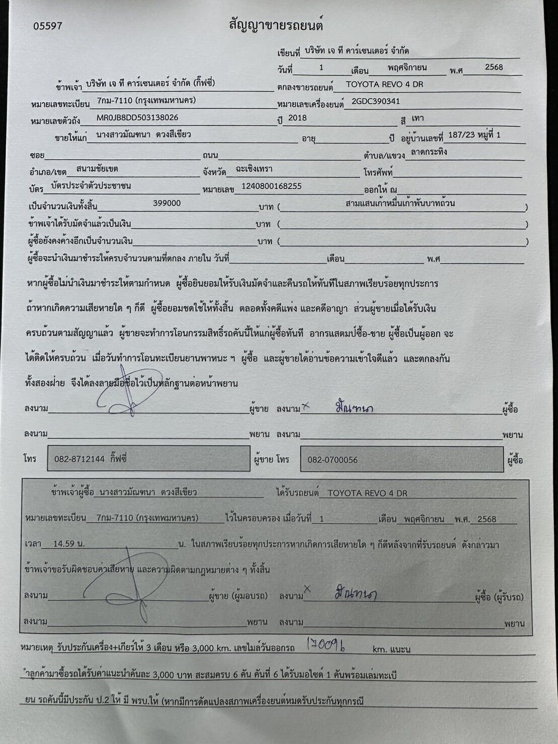 | สาขาที่รถอยู่ | เจที.คาร์เซ็นเตอร์ - ชะอำ | ||