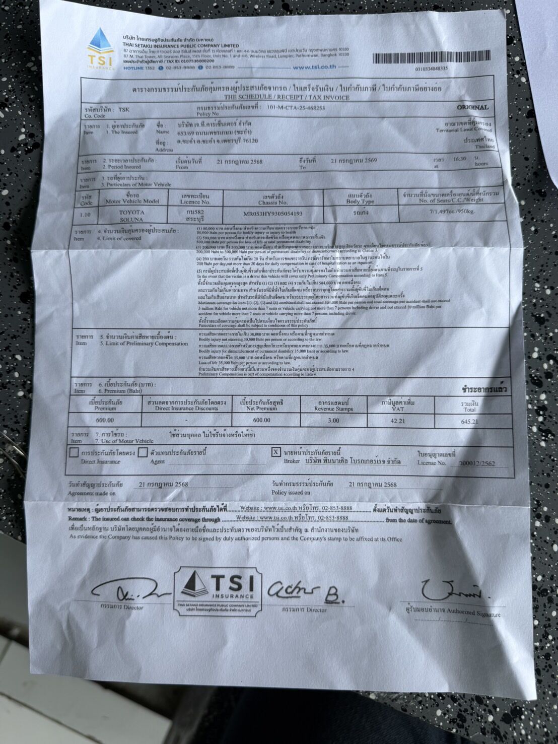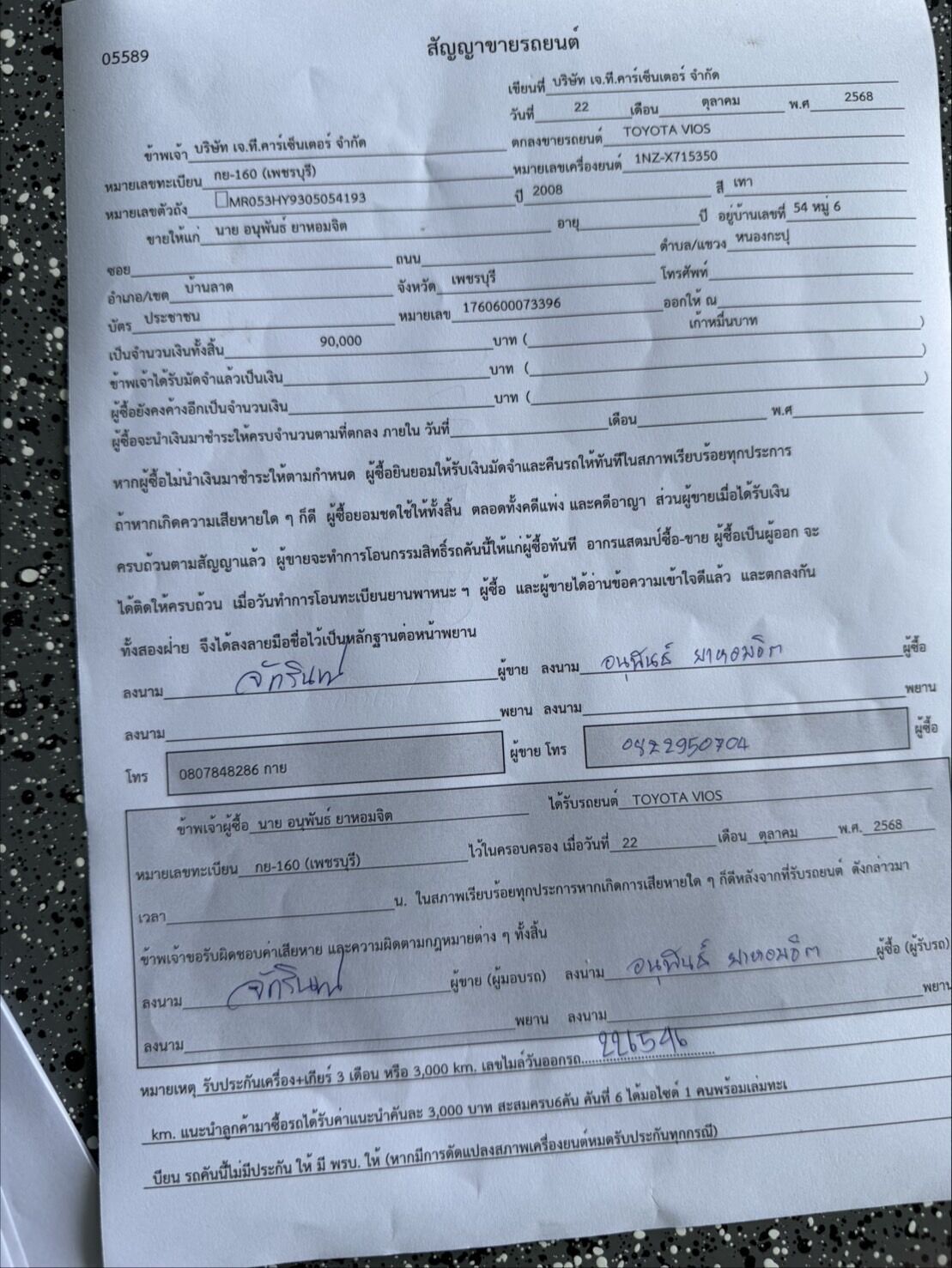 | ชื่อรถ | TOYOTA VIOS | ||